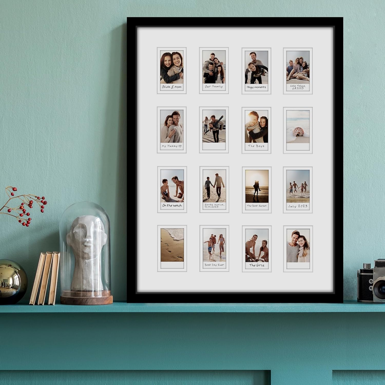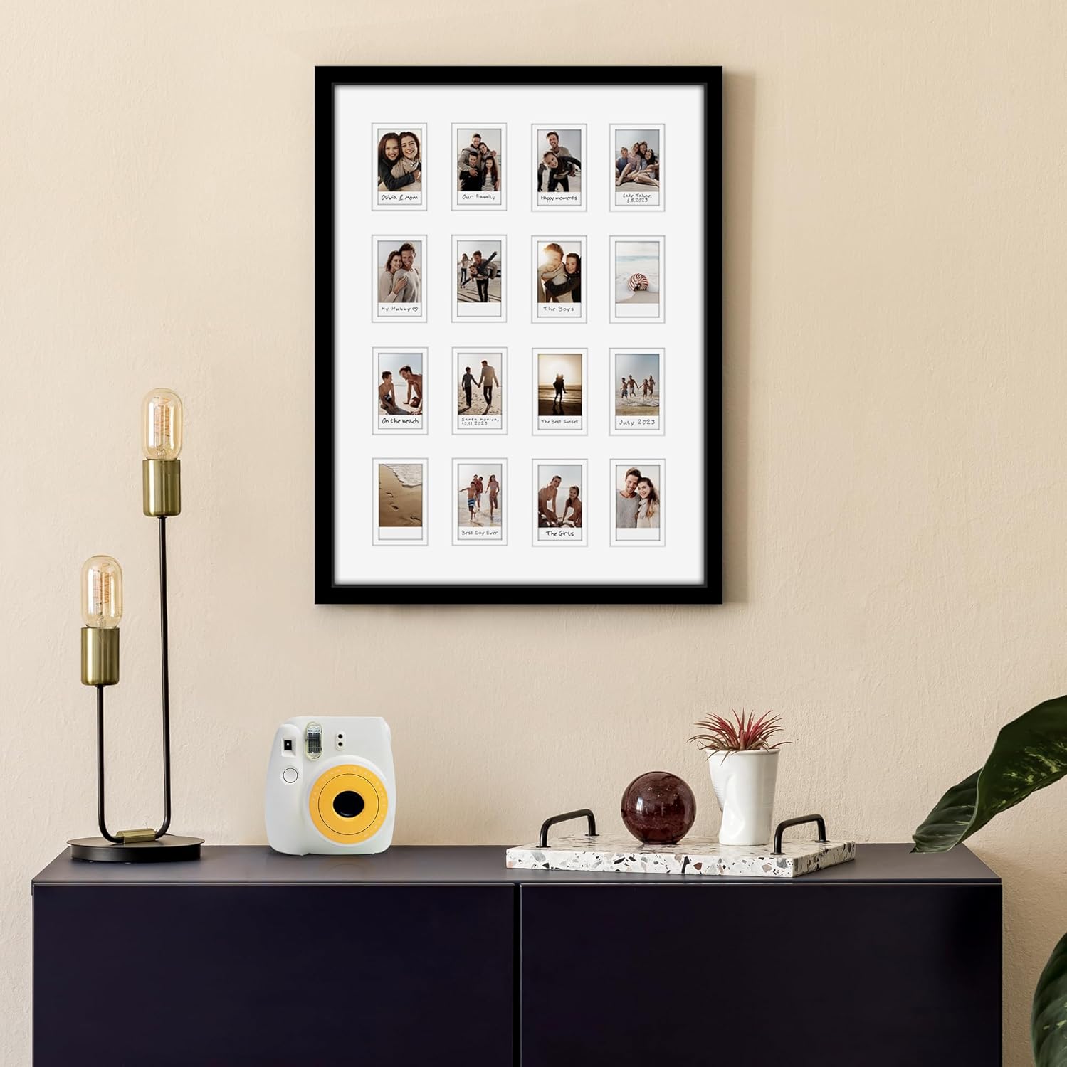 Snap, frame, repeat. Display your Instax Mini instant-print photos in style and elevate your decor with Americanflat mini picture frames. These sleek and versatile frames offer a stylish way to showcase your cherished memories. Crafted from durable PVC material, this 15×20 frame combines timeless design and lasting quality, perfectly sized to showcase 16 mini photos (2.1×3.4 inches), giving those tiny but mighty snapshots the spotlight they deserve. Whether it’s a wedding moment, a family laugh, or a candid photo of your fur baby, these black picture frames preserve your treasured moments while adding a personal touch to your home or office decor. After all, your memories deserve more than just being tucked away in a drawer. The polished plexiglass front provides clarity and protection, shielding your photos from dust and scratches, while the sturdy backboard and easy-to-use turn points ensure your images remain securely in place. Designed for effortless display, these picture frames include hanging hardware, making them ideal for a hassle-free wall display. Celebrate life’s quirks and milestones with a frame that does more than just hold photos – it elevates them. Thoughtfully packaged for safe delivery (because smashed memories are no fun), Americanflat frames blend quality craftsmanship with timeless design to make your space as unique as your story. Give your photos the home they deserve – order our mini photo frame today and let them steal the show!