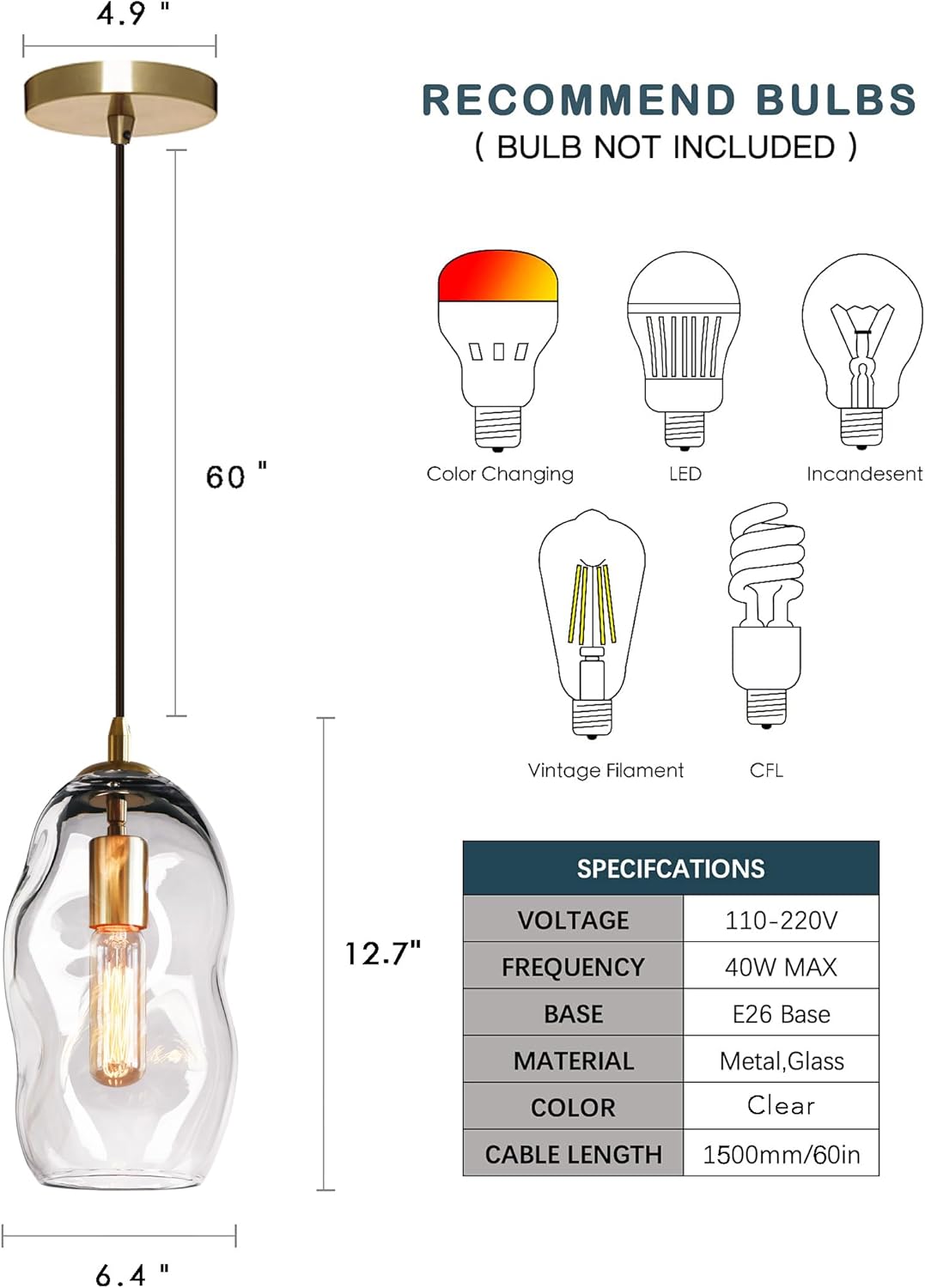 · Compatible with a variety of bulb types: LED, INCANDESCENT, CFL. For energy efficiency, LED Edison style bulb is recommended.